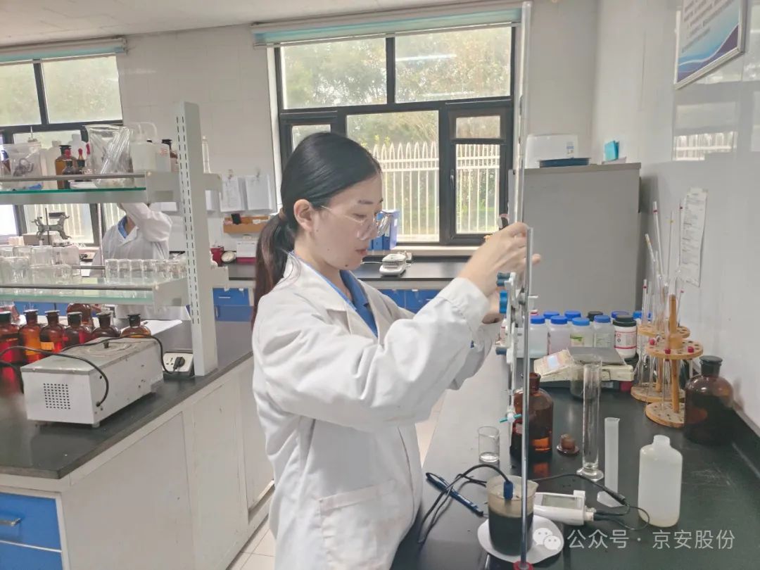 尊龙时凯生态科技集团工作人员对发酵罐沼液样本进行监测检验。。。。 贾阔 摄